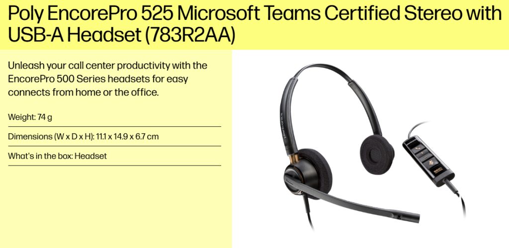 đ§ Poly EncorePro 525 Stereo Headset (USB-A)