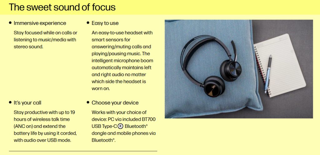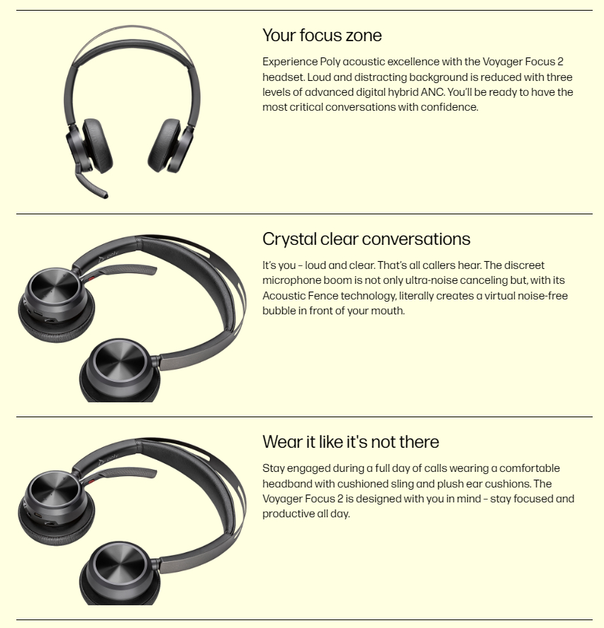🎧 Poly Voyager Focus 2 USB-C-C Wireless Headset (with Stand)